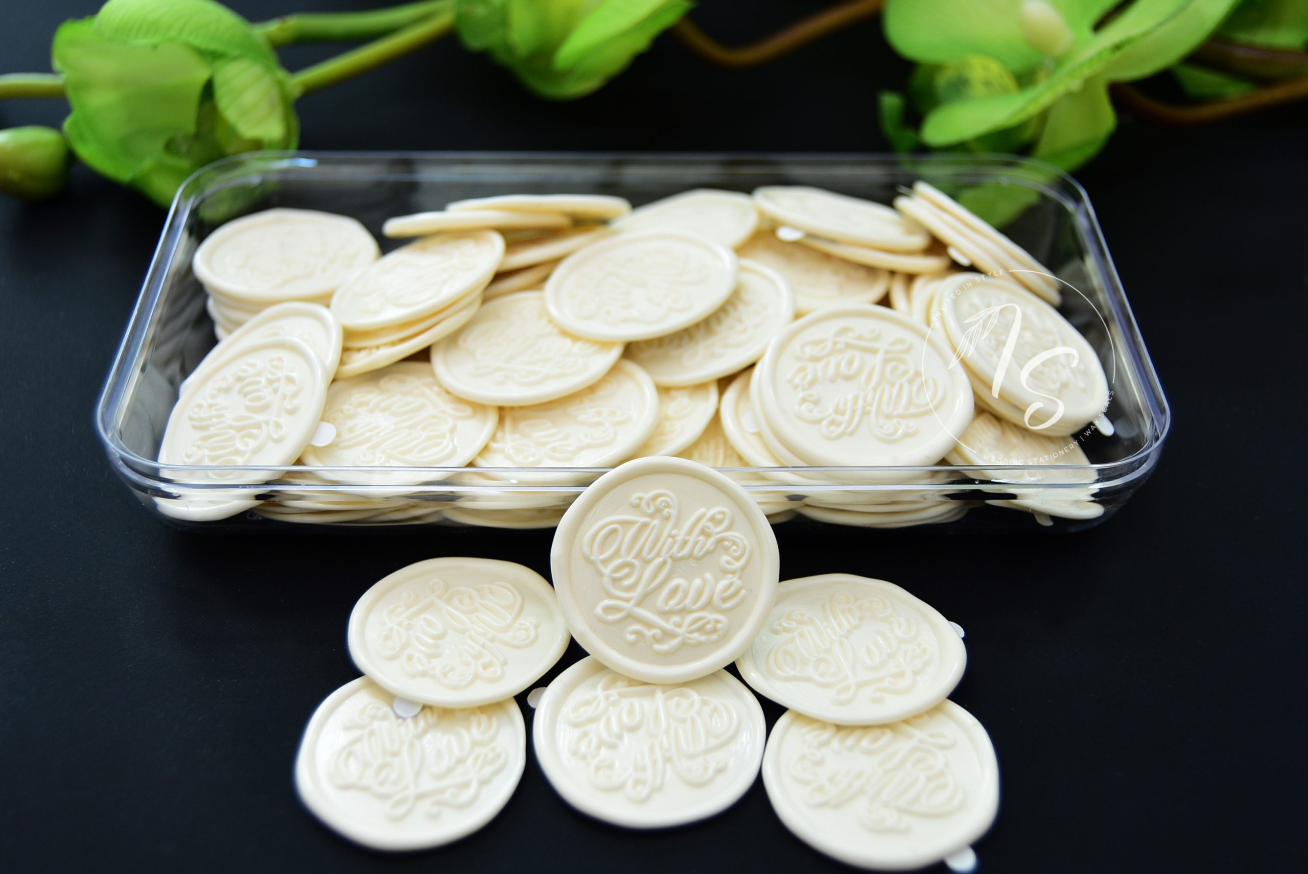 | Wax colours | Black, Blush, Copper, Coral, Dusty rose, Hot pink, Ivory, Metallic red, Navy, Ocean, Olive, Pastel rose, Pearl, Plum, Red, Seafoam, Silk beige, Silver sage, White, Wine red, Yellow gold, Bordeaux, Coffee, Emerald, Gold, Mint, Purple, Rose pink, Sage, Silver, Vellum |