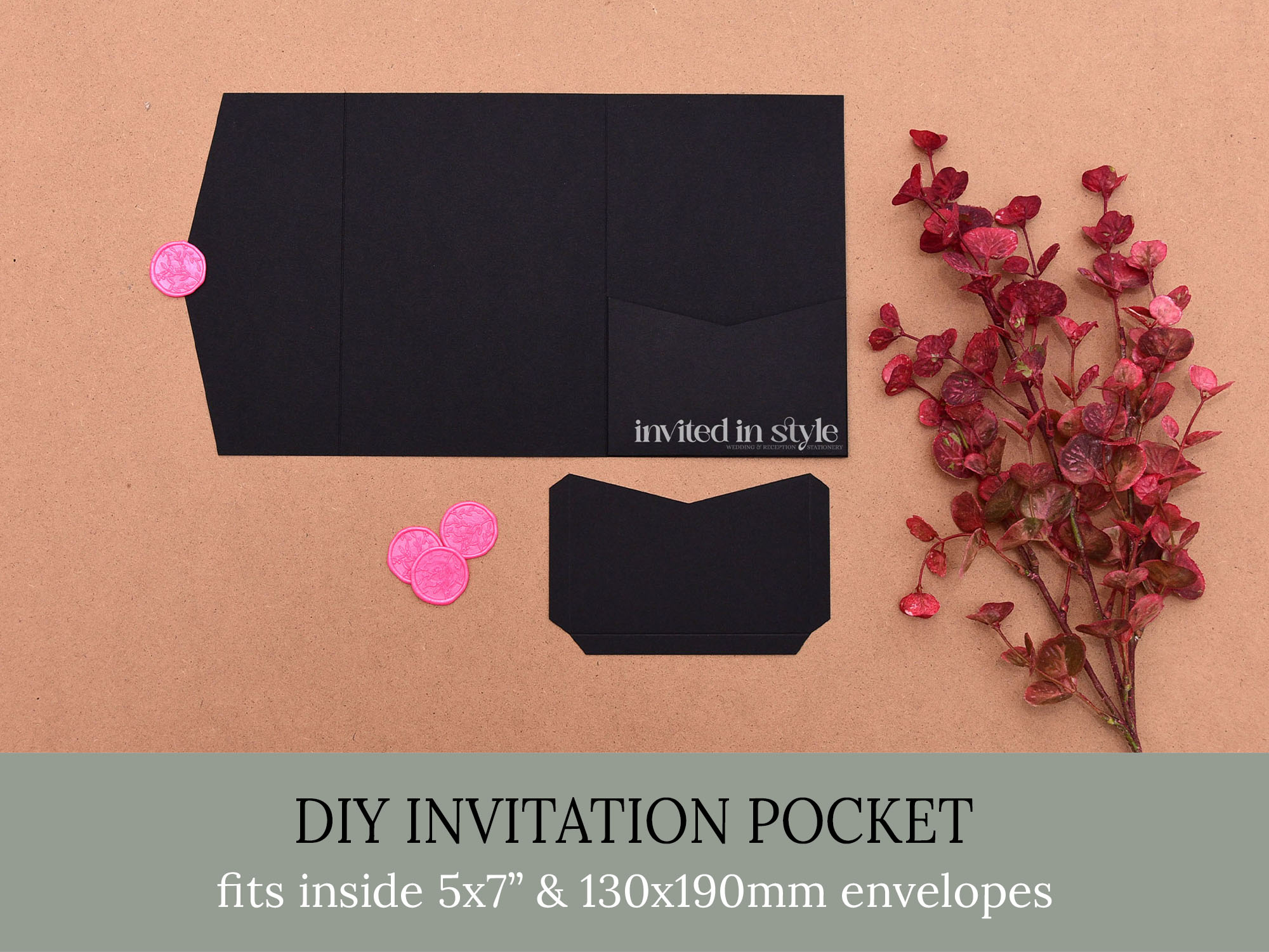 *Any accessories, invitation cards, and/or enclosure cards shown in the photos are for illustrations purposes only and will not be included with your order. The listing is for just the flat-packed pockets.